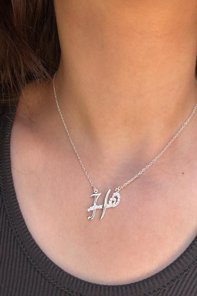 سلسال حرفين مع فصوص زركون هو قطعة مجوهرات فاخرة تجمع بين الأناقة والجمال. يتكون من حرفين متصلين أو منفصلين، مزينين بفصوص زركون لامعة تضيف لمسة من الفخامة والرقي.