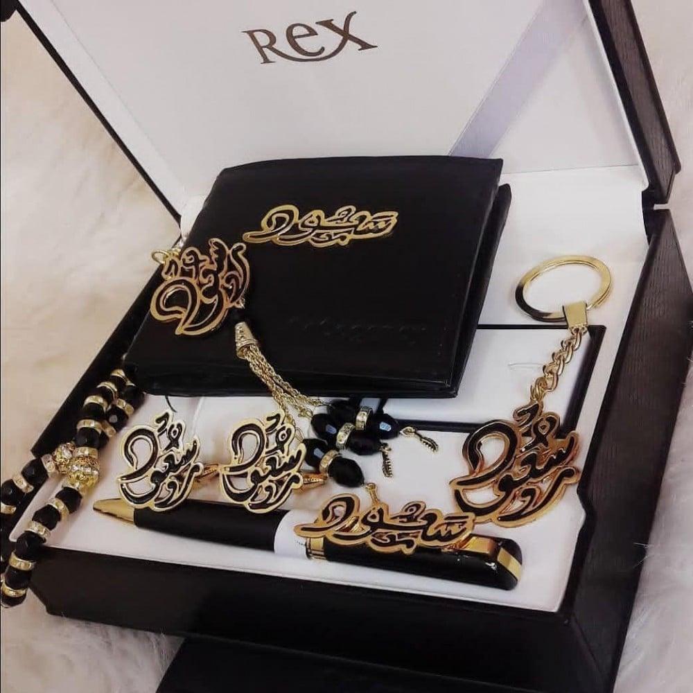 طقم رجالي قمة في التميز والأناقة، نقدمه بأحدث التصميمات العصرية المتنوعة التي تمنحك لمسة مليئة بالحيوية، متوفر منه عدة قطع تتوافق في نفس التصميم ومنها قلم وبوك، وذلك ليُلائم أحدث صيحات الموضة الرجالية