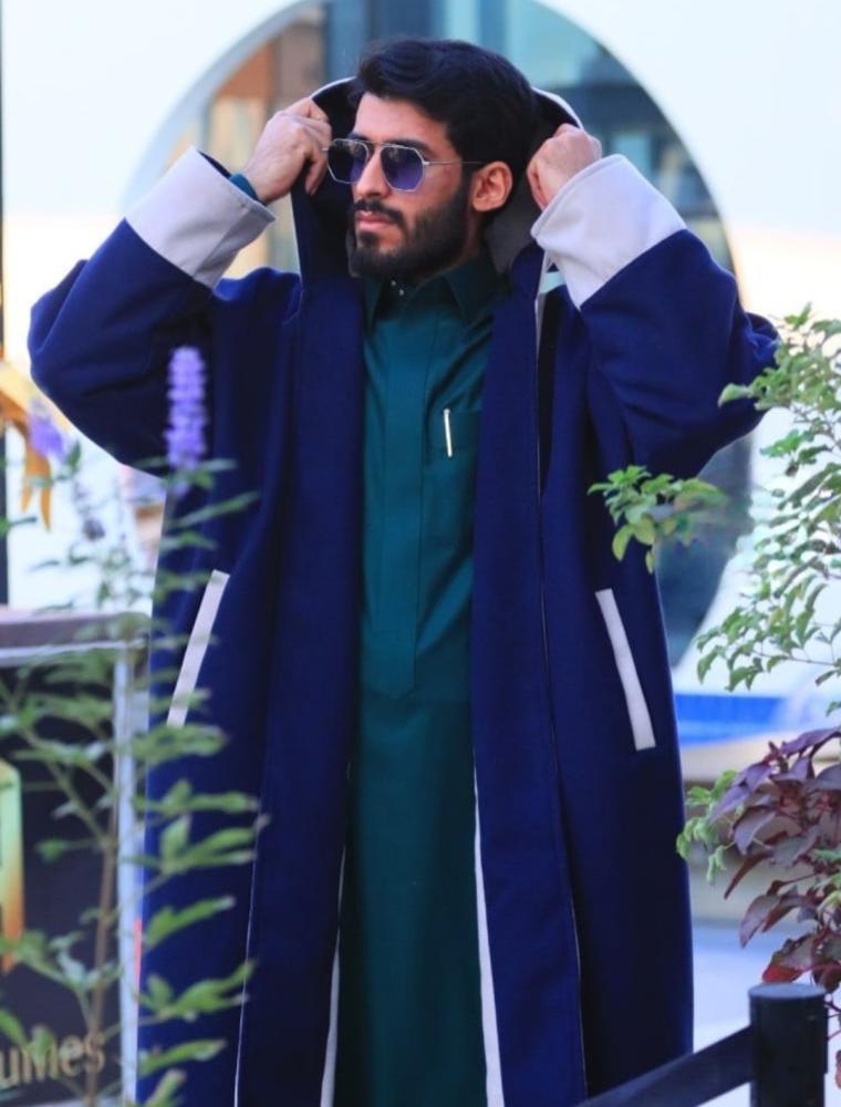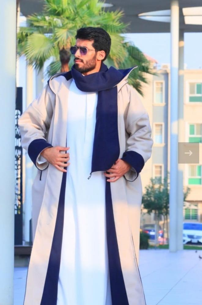 فروه دبل فيس مع شال سكري غامق وكحلي