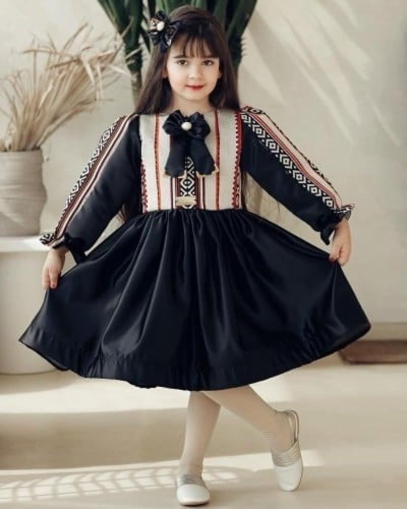 فستان بناتي بنقشة السدو التراثية وتصميم عصري انيق